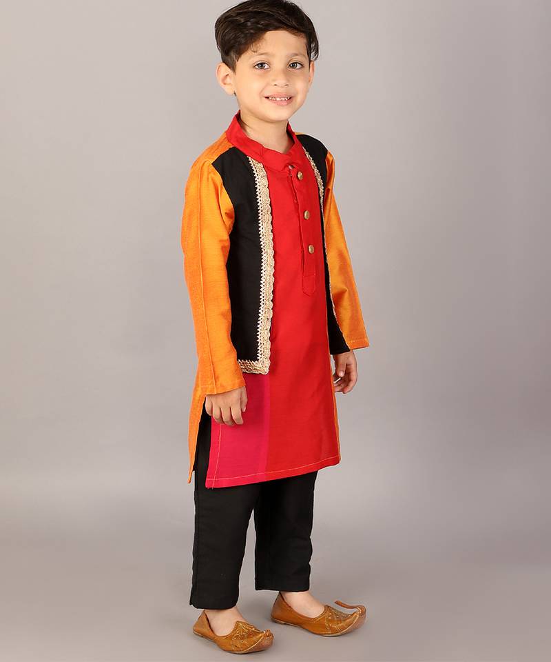 | Product Description | Multi Colored Kurta .Attached Black Jacket With Lace Embellishment . Bottom With Elastic