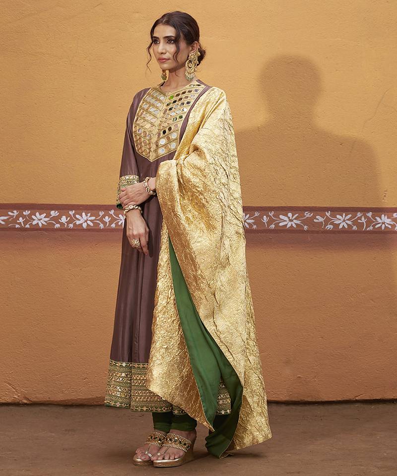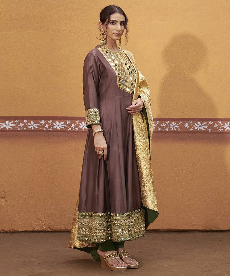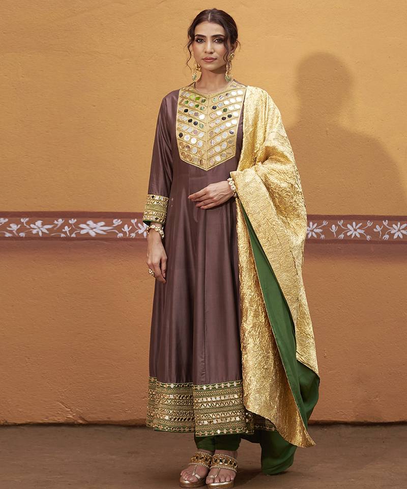 | Product Name | Brown Embroidered Silk Kurta Set | |