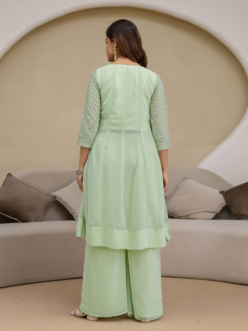 | Product Name | Women's Georgette Embroidery Work Front Slit Kurta Palazzo With Dupatta For Women | |