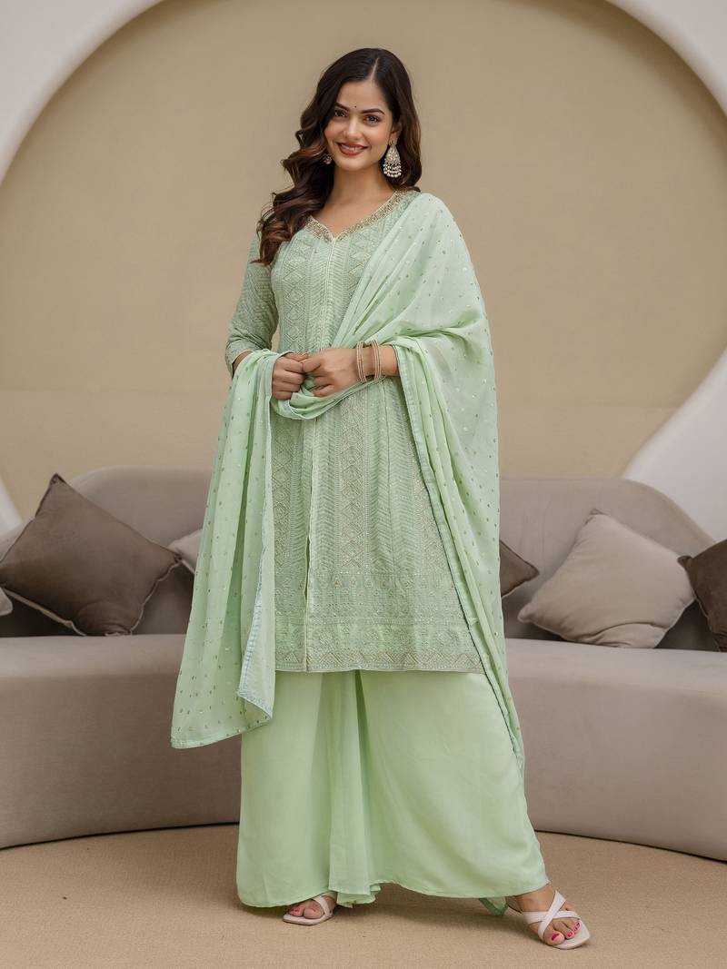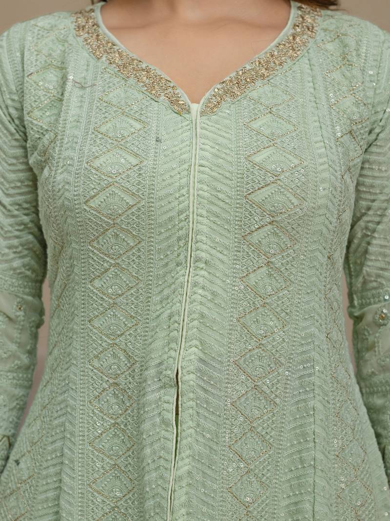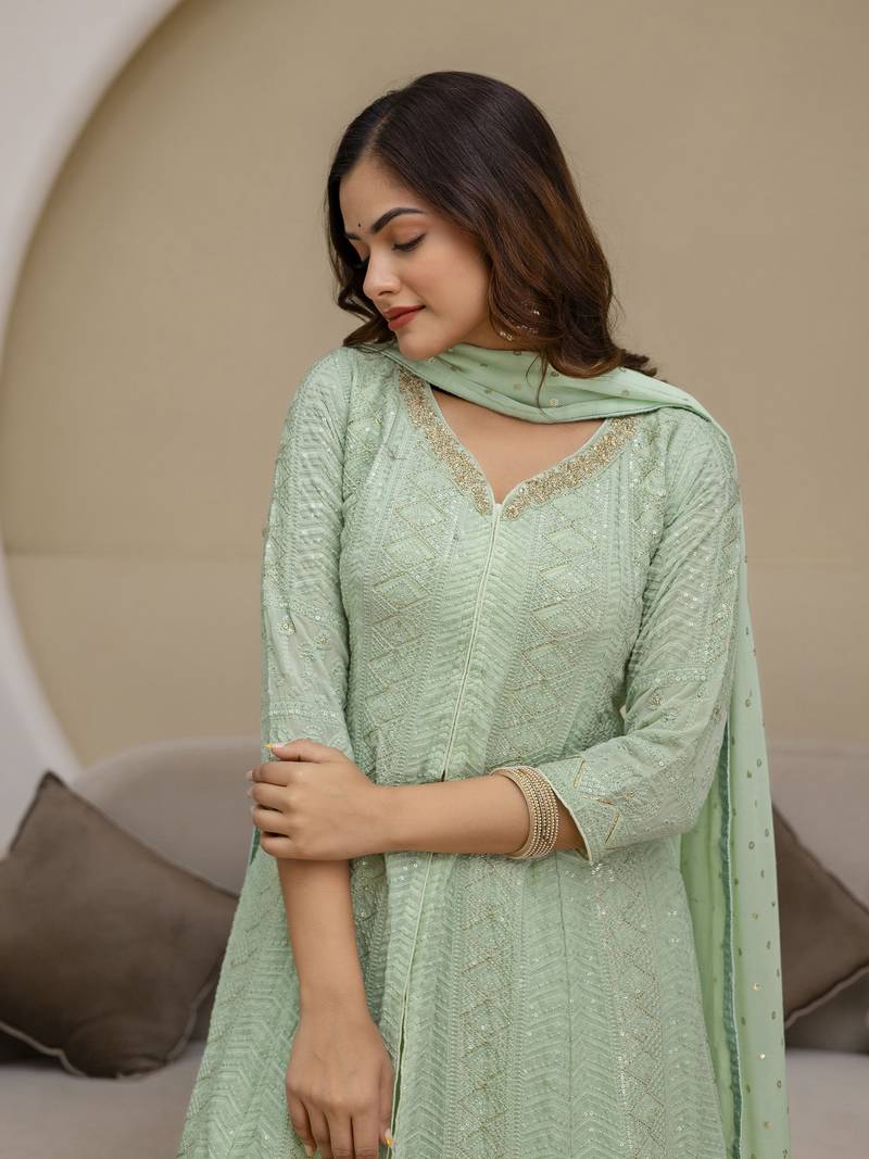 Women's georgette embroidery work front slit kurta palazzo with dupatta for women stitched
