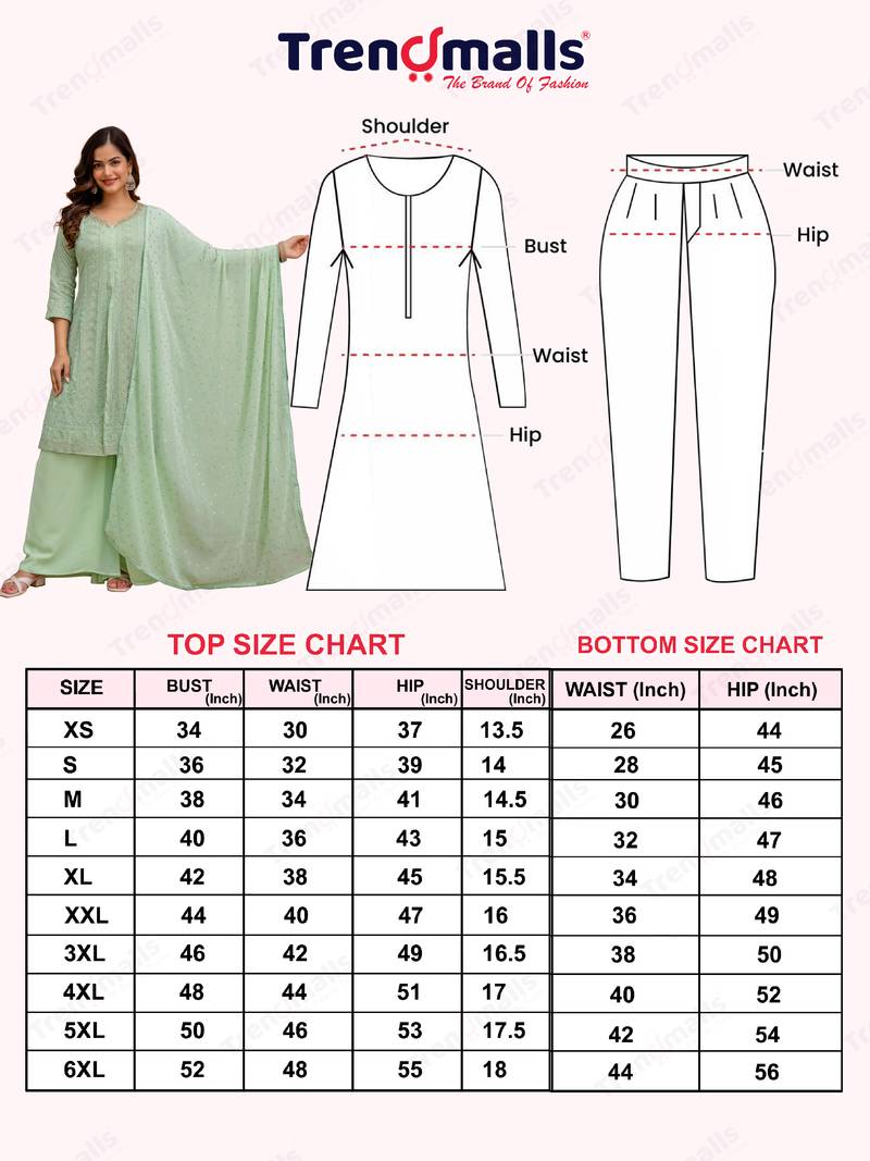 | • | Bottom | : | Color- Light Teal / Fabric- Georgette |