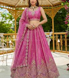 Awesome pink dori work satin engagement wear lehenga choli