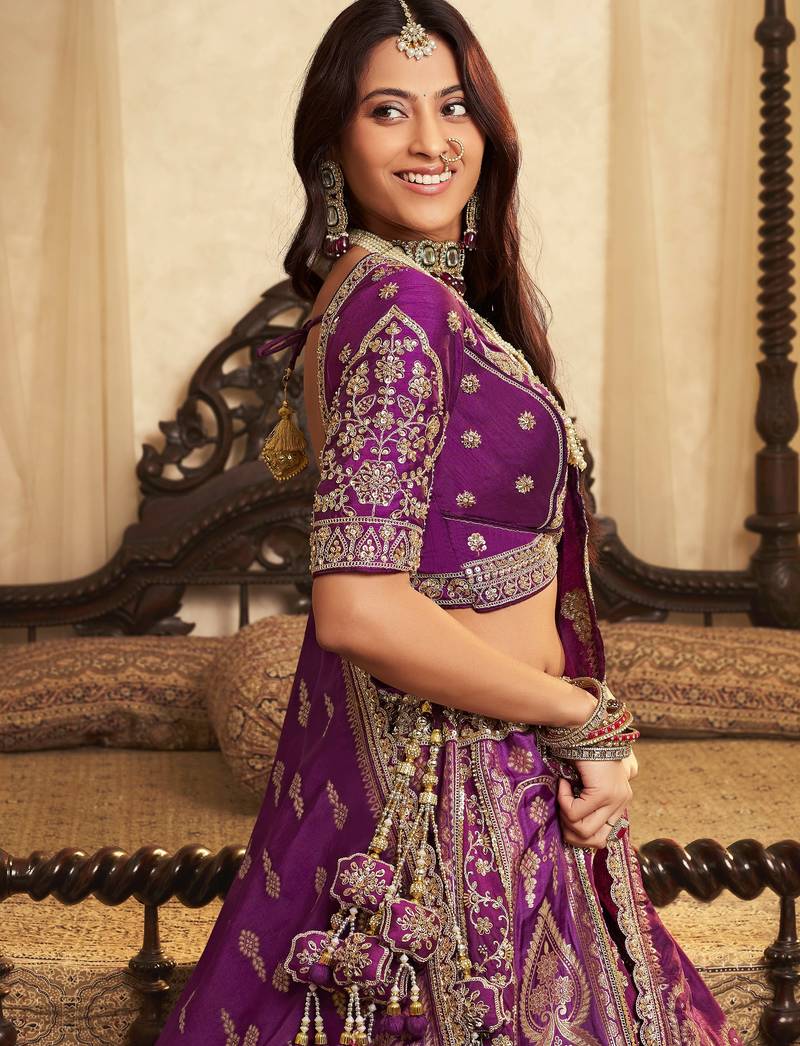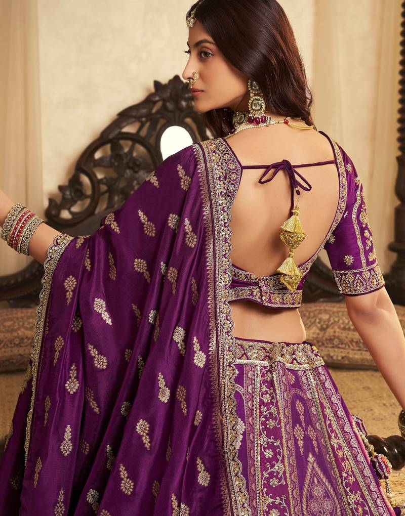 | Product Name | Awesome Purple Embroidered Banarasi Silk Reception Wear Lehenga Choli With Dupatta | |