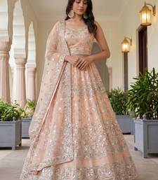 | Product Name | Glamorous Peach Zari Work Net Engagement Wear Lehenga Choli | |