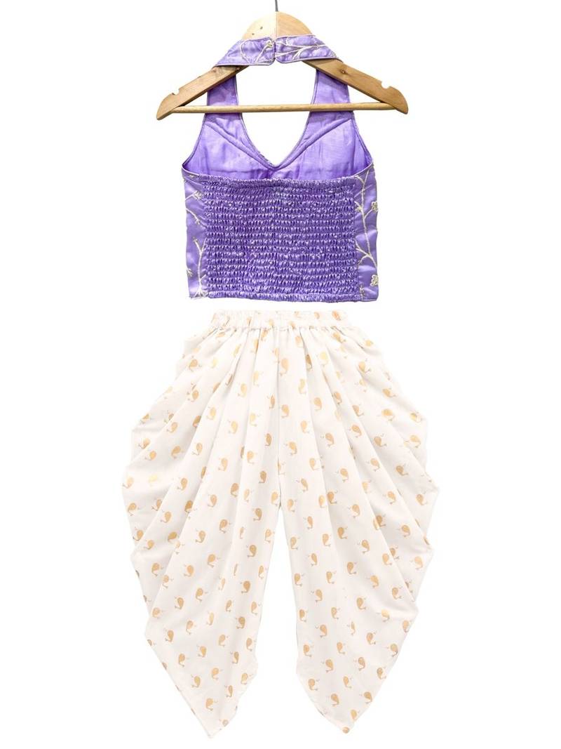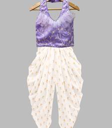 Lavender & offwhite embriodered polyester top with dhoti ethnic wear