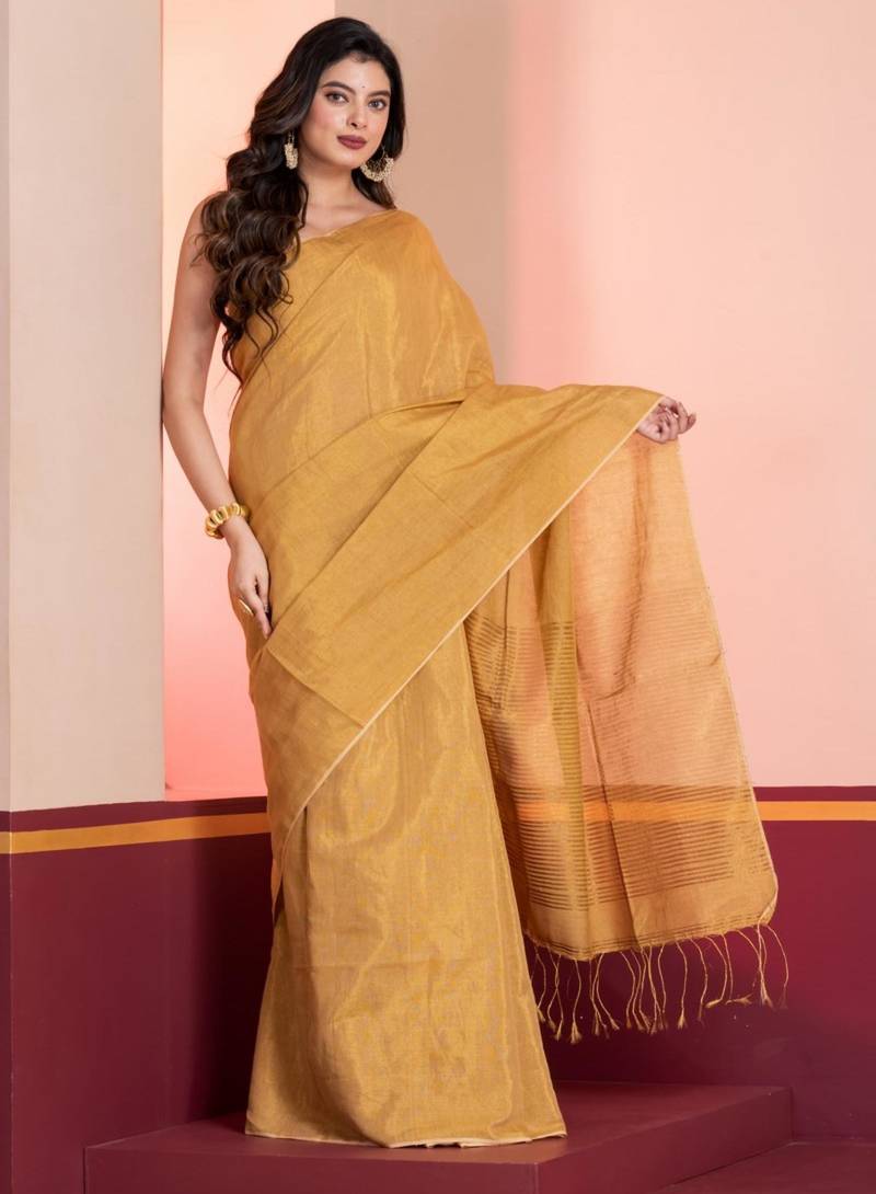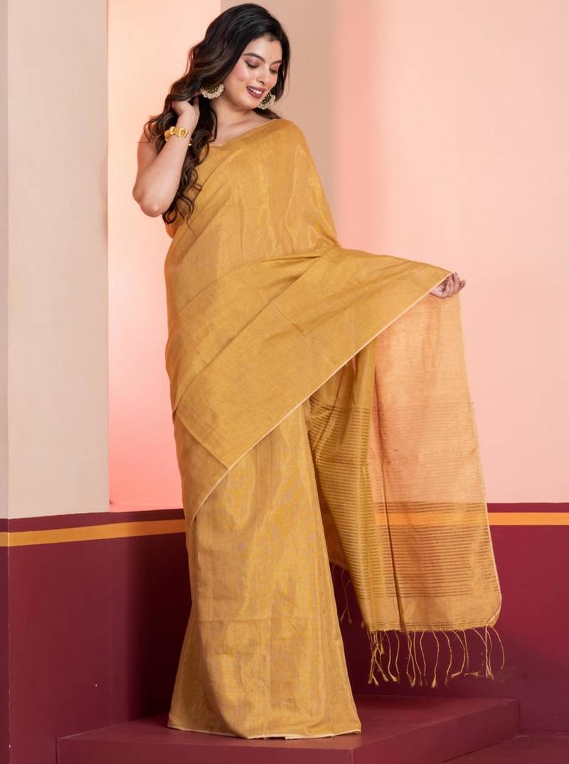 • | Saree | : | Color- Golden / Fabric- Linen |