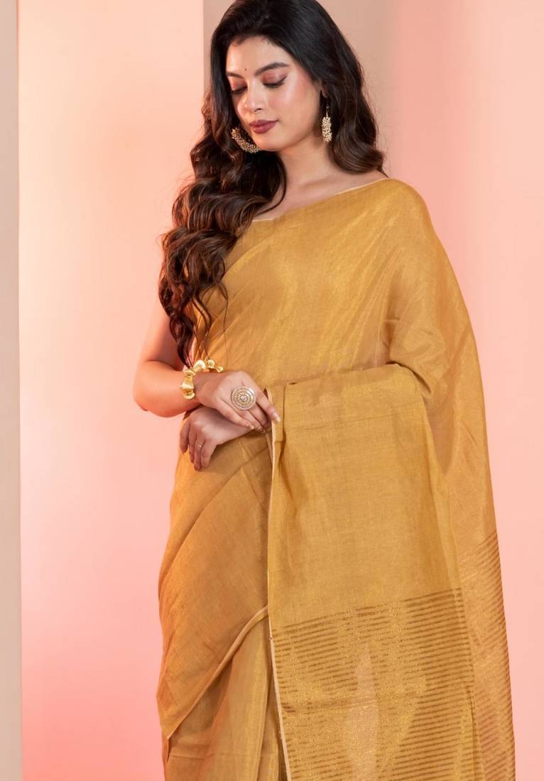 Product Name | Golden Linen Tissue Saree With Zari, With Blouse | |