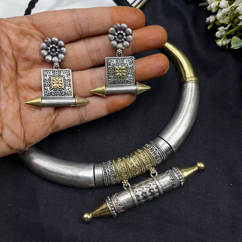 | Product Name | Oxidized Tribal Necklace & Earring Set | Vintage Ethnic Dual Tone Hasuli Torque Set | |
