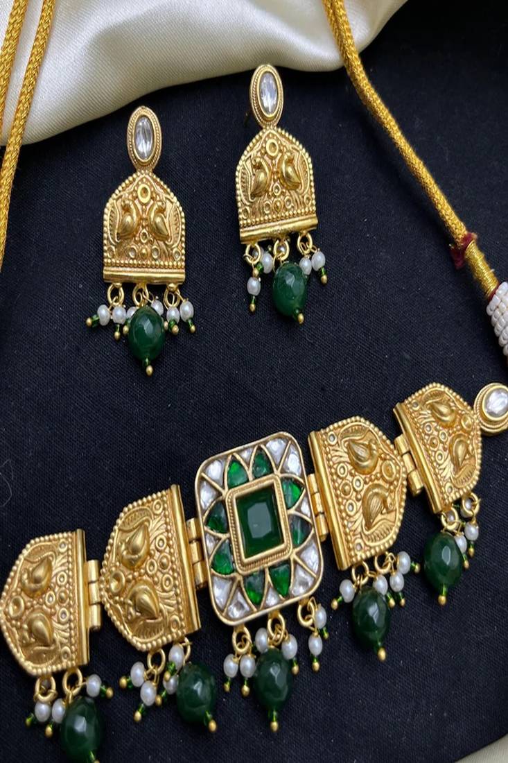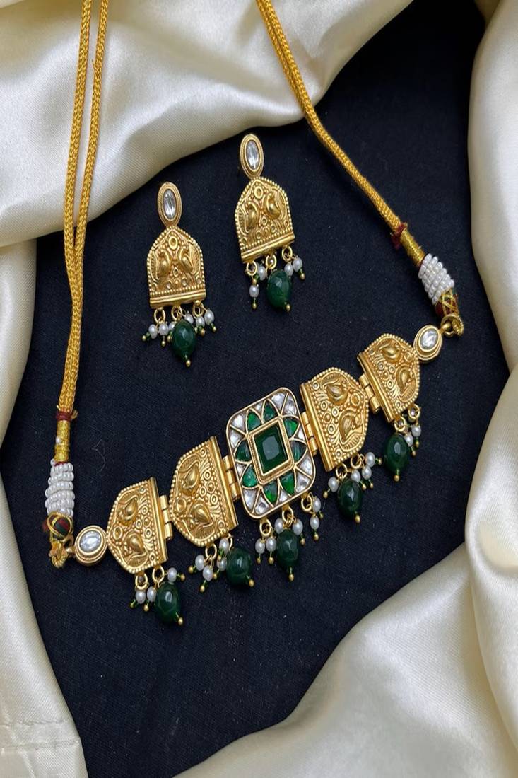 Rajwadi rajasthani choker necklace set||green doublet stone kundan bridal jewelry