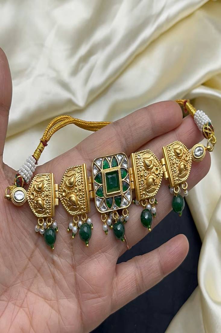 | Product Name | Rajwadi Rajasthani Choker Necklace Set||Green Doublet Stone Kundan Bridal Jewelry | |