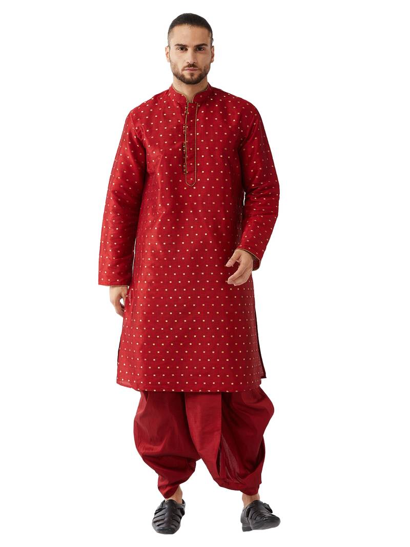 Product Name Maroon Woven Silk Blend Dhoti Kurta
