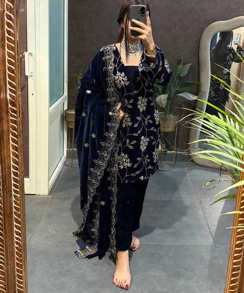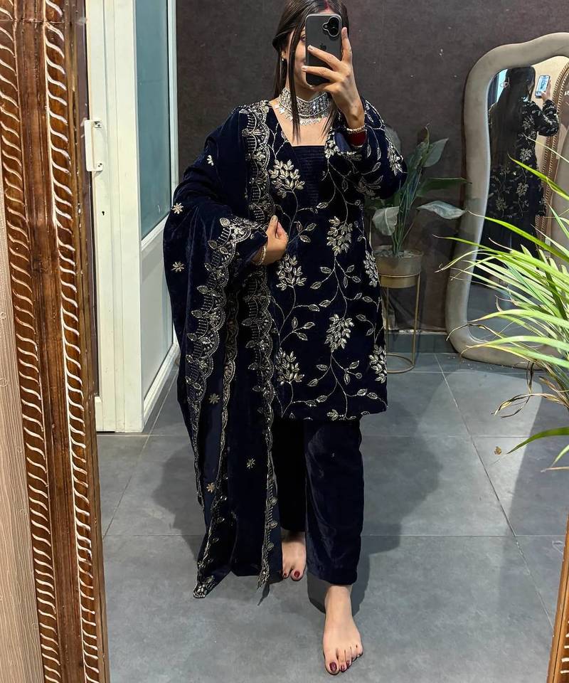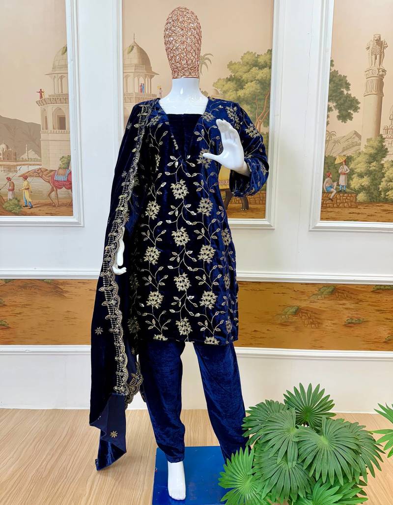 | Product Name | Blue Velvet Fornt Embroidery Work Kurta With Bottom & Dupatta | |