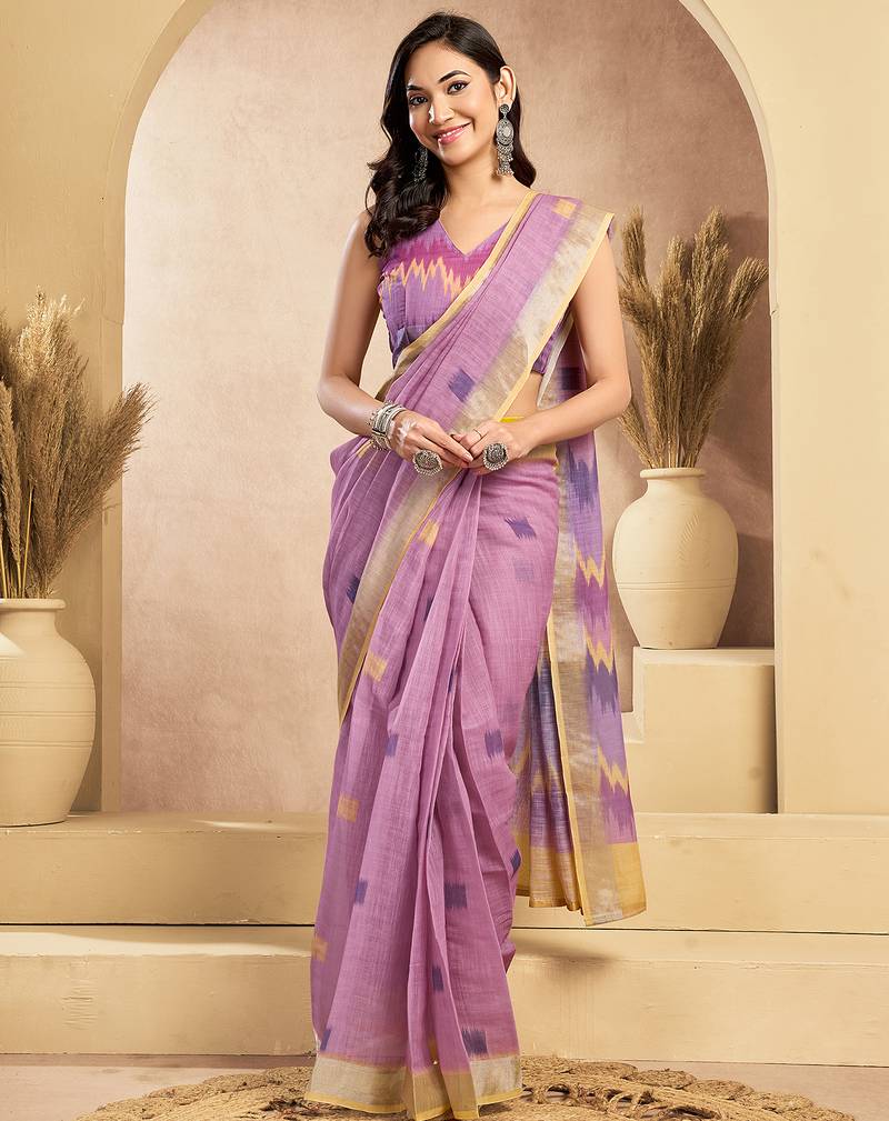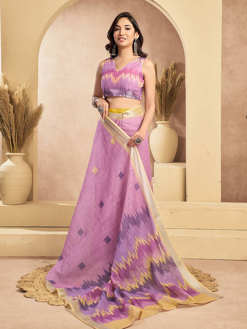 Product Name Digital Printed Linen Ready To Wear Pocket Saree With Unstitched Blouse