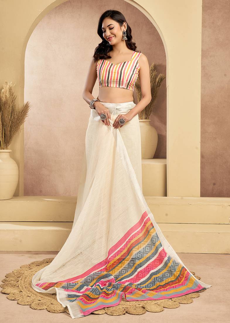 | Product Name | Digital Printed Linen Ready To Wear Pocket Saree With Unstitched Blouse | |