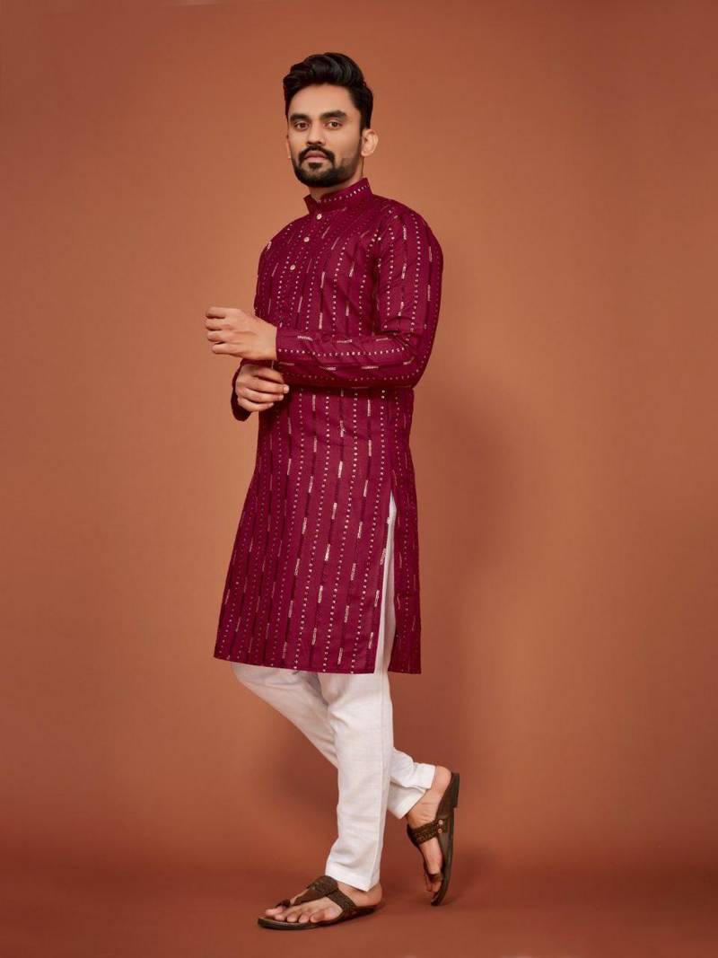 Maroon soft cotton embroidery sequance work kurta pajama set