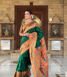 Soft paithani silk blend saree with zari weaving meenakari motif design