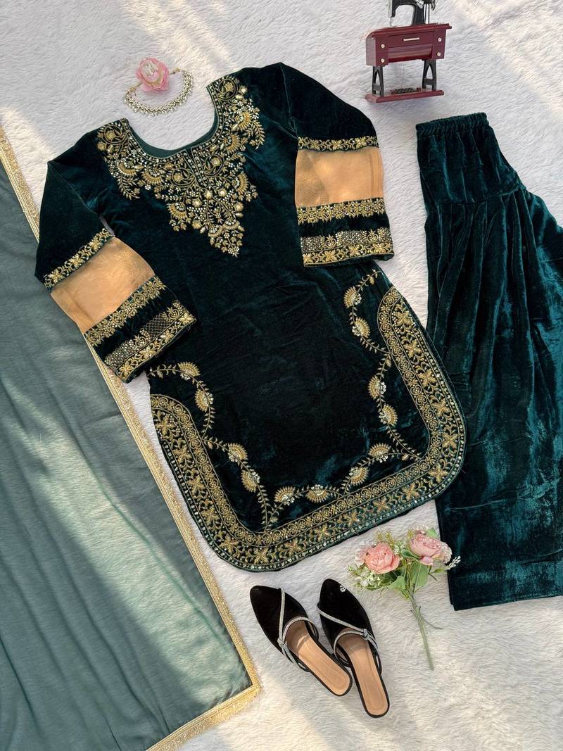 | Product Name | Teal Velvet Thread With Sequence Work Suit & Palazzo With Dupatta Set | |