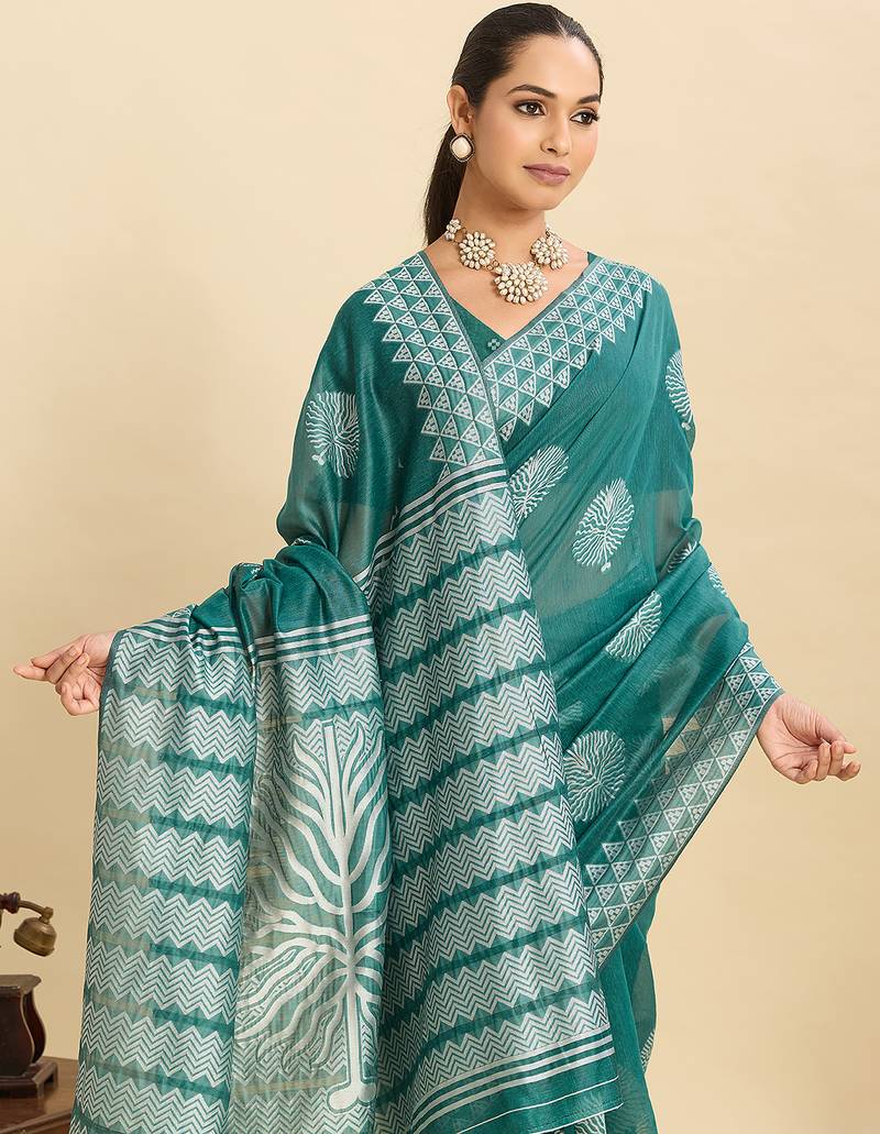 Art silk fancy jacquard saree (flower-ball-02-green)