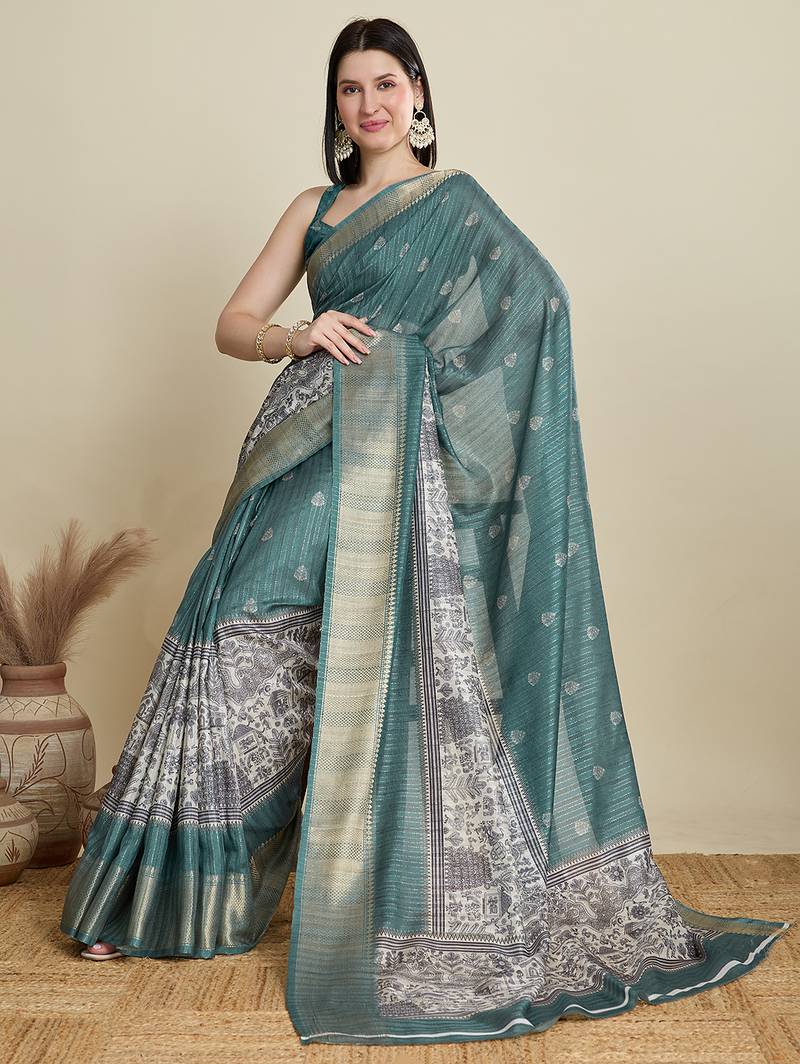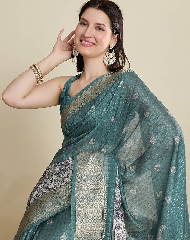 Cotton art silk fancy jacquard bollywood saree (abhilasha-green)