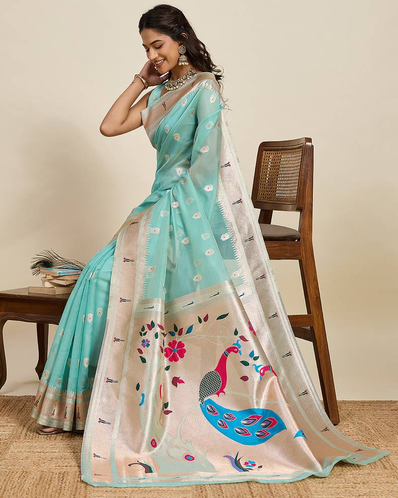 Cotton art silk paithani jacquard saree (rajvi-paithani-aqua)