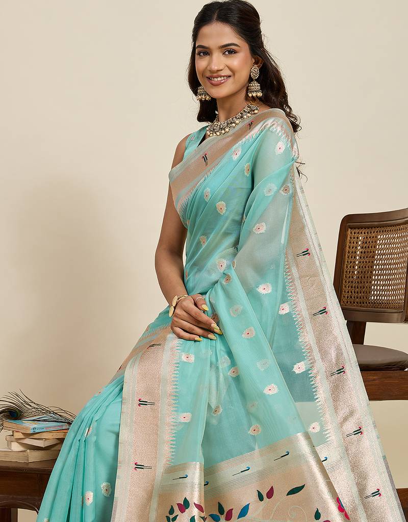 | Product Name | Cotton Art Silk Paithani Jacquard Saree (Rajvi Paithani Aqua) | |