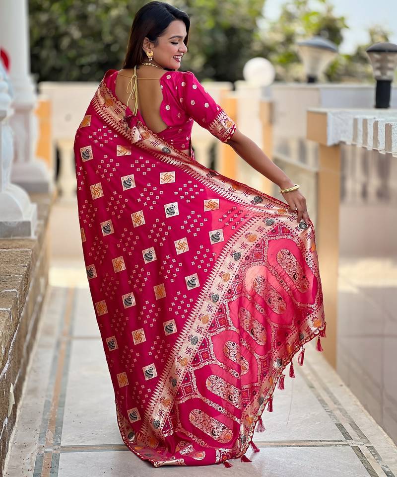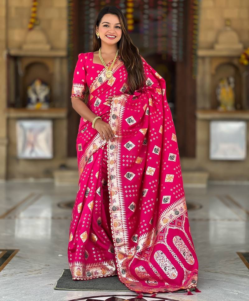 Soft dola art silk fancy jacquard bollywood saree (swastik-dola-rani-pink)