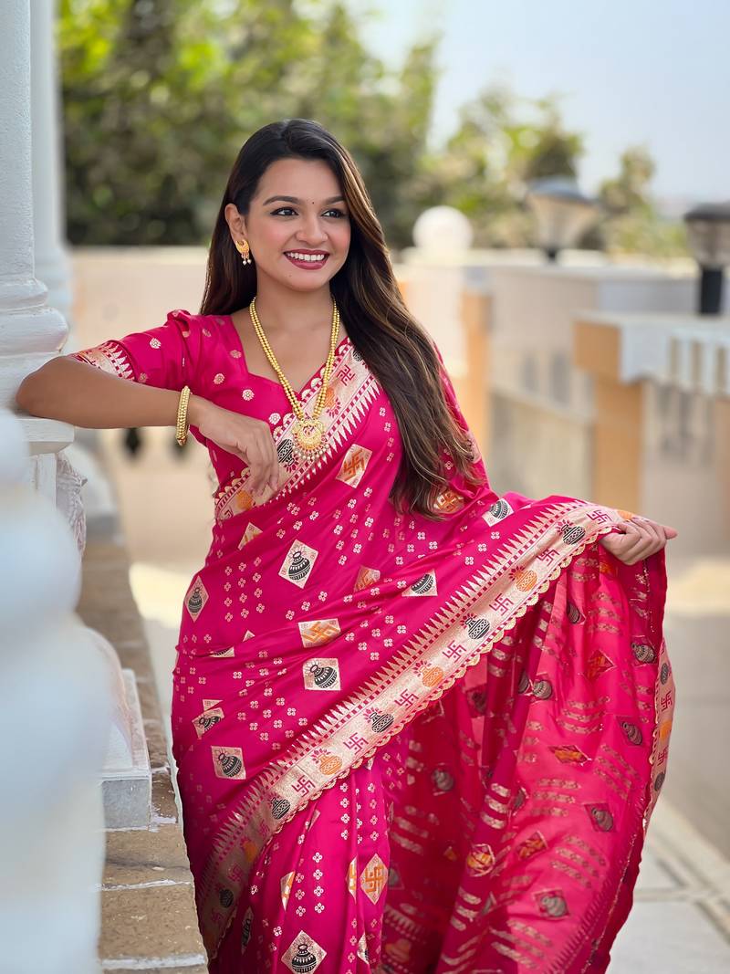 | Product Name | Soft Dola Art Silk Fancy Jacquard Bollywood Saree (Swastik Dola Rani Pink) | |