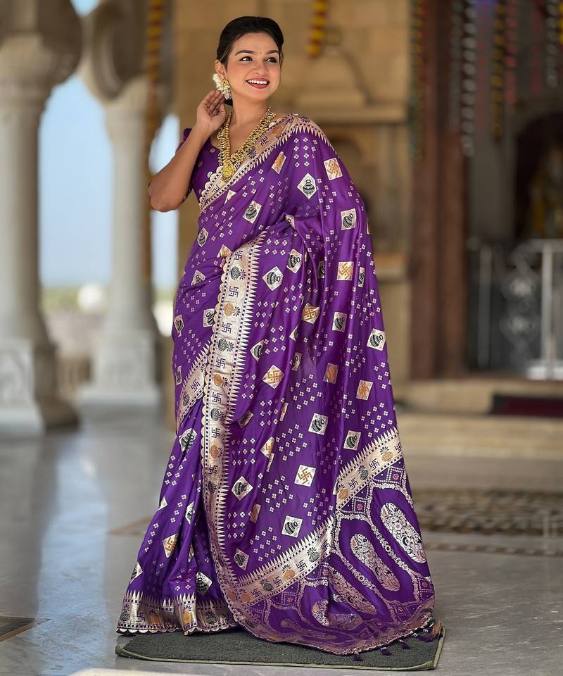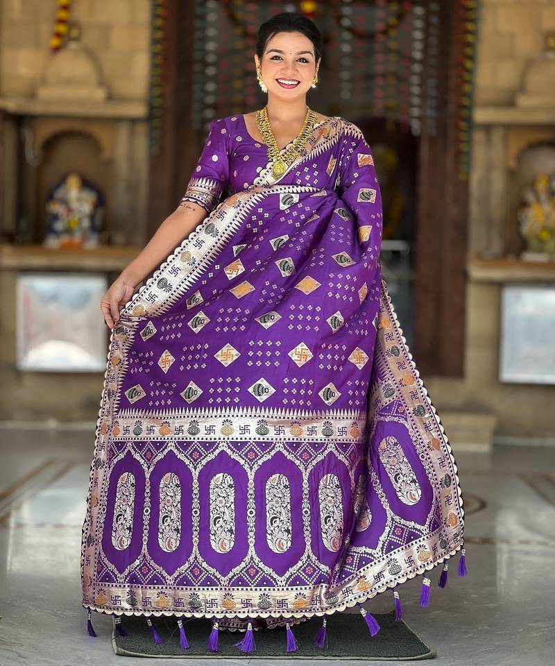Soft dola art silk fancy jacquard bollywood saree (swastik-dola-violet)