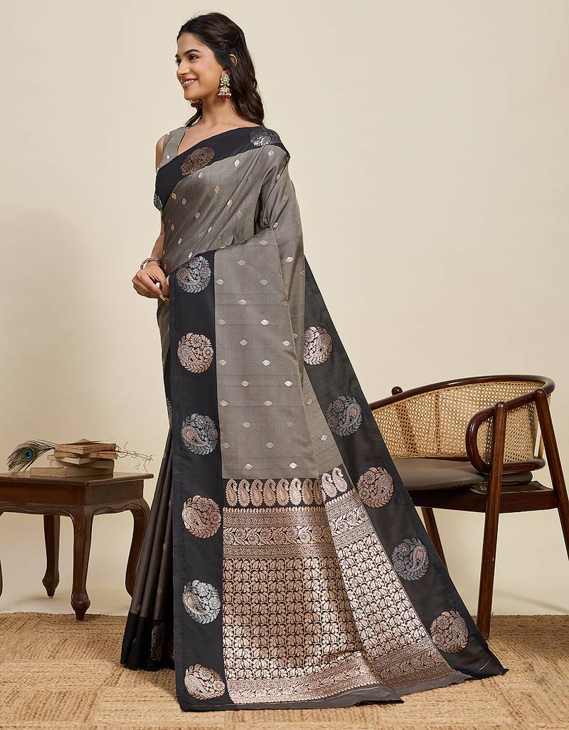 Soft litchi art silk banarasi art silk jacquard saree (aamrapali-03-black)