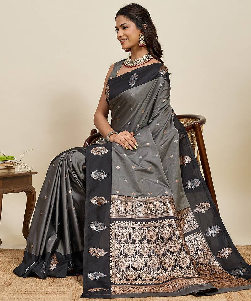Soft litchi art silk banarasi art silk jacquard saree (aamrapali-04-black)