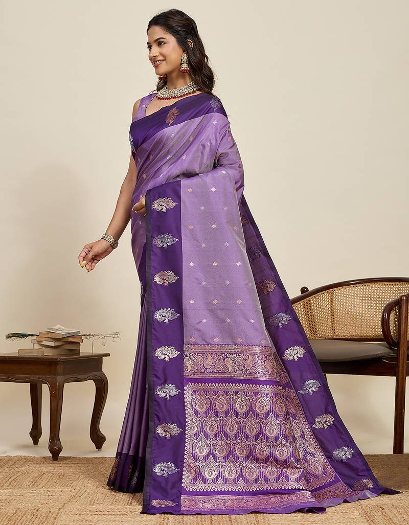 Soft litchi art silk banarasi art silk jacquard saree (aamrapali-04-lavender)