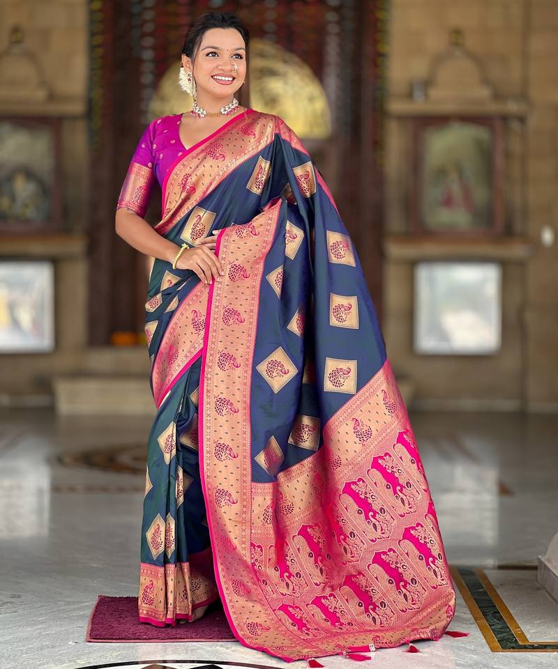 | Product Description | We Offers Banarasi Softy Silk Saree With Rich Intricate Golden Zari Meenakari Jacquard Work At All Over Body, Border & Grand Pallu. Blouse, Border And Pallu Have Very Fine Contrast Color Matching With Saree Body. Saree Has Beautiful Zalar (Tessel) Work At Pallu. Saree & Blouse Material Is Litchi Silk Which Very Soft And Skin Friendly Material. This Saree Has A Length 6.30 Meter Which Includes 0.8 Meters Of The Blouse. These New Bollywood Designer Fashionable Saree For Women Can Be Used As Party Wear Saree, Festival Saree, Wedding Saree On Every Occasions. Product Colour May Slightly Very Due To Photographic Lighting Sources Or Your Monitor Settings. |