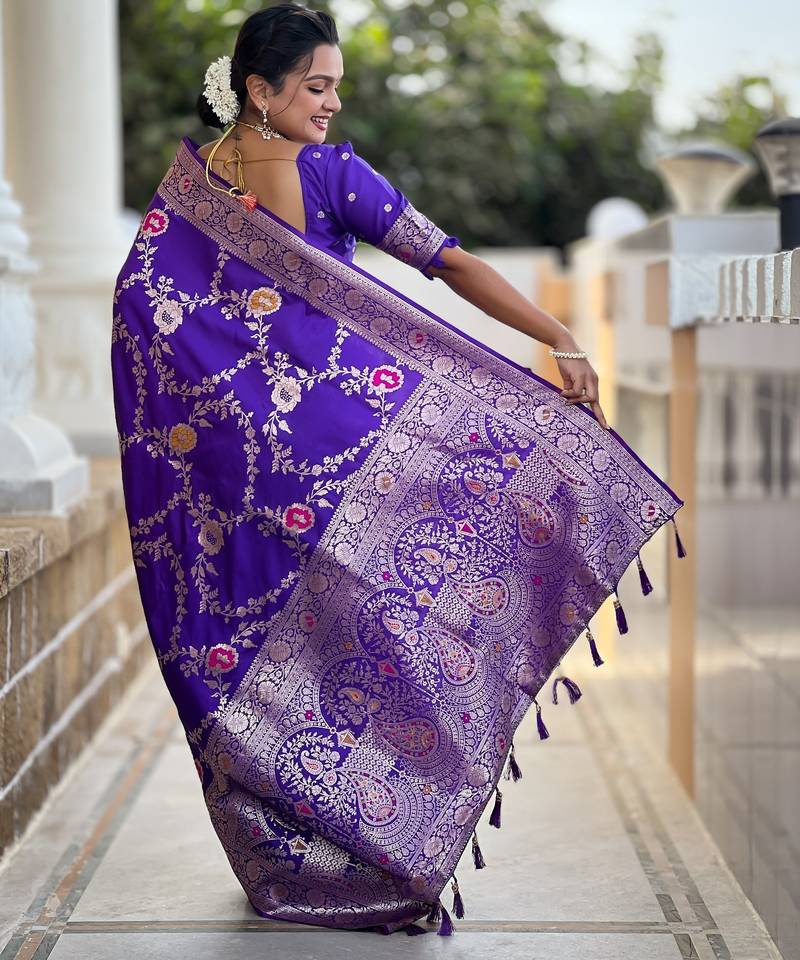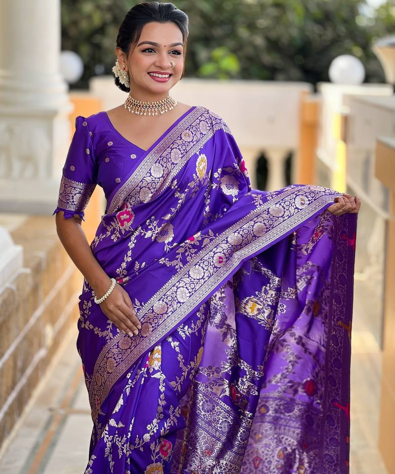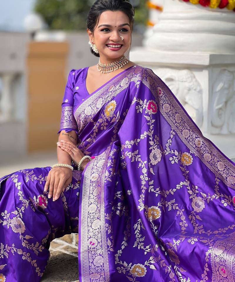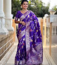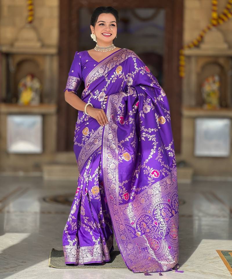 Soft litchi art silk banarasi art silk jacquard saree (banarasi-1-purple)