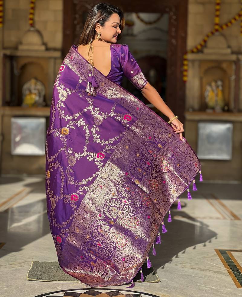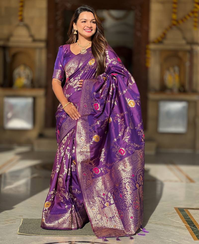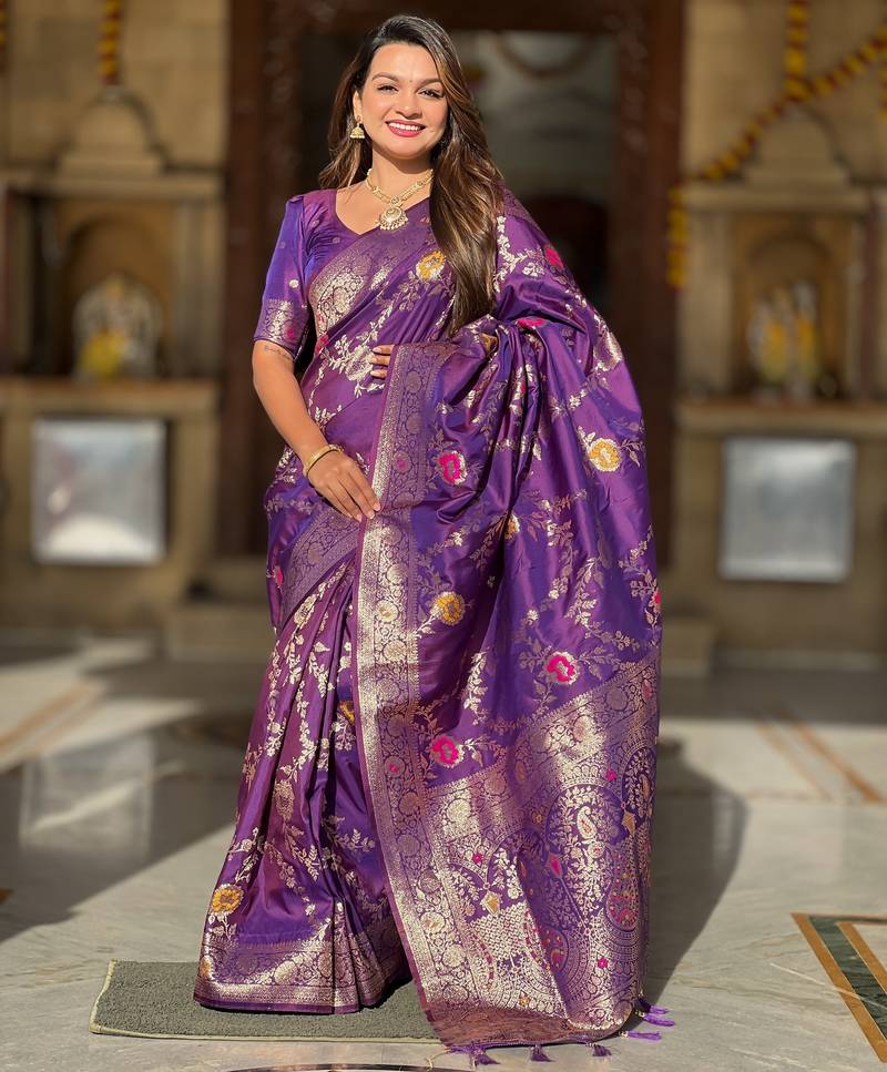 | Product Description | We Offers Banarasi Softy Silk Saree With Rich Intricate Golden Zari Meenakari Jacquard Work At All Over Body, Border & Grand Pallu. Blouse, Border And Pallu Have Very Fine Zari Matching With Saree Body. Saree Has Beautiful Zalar (Tessel) Work At Pallu. Saree & Blouse Material Is Litchi Silk Which Very Soft And Skin Friendly Material. This Saree Has A Length 6.30 Meter Which Includes 0.8 Meters Of The Blouse. These New Bollywood Designer Fashionable Saree For Women Can Be Used As Party Wear Saree, Festival Saree, Wedding Saree On Every Occasions. Product Colour May Slightly Very Due To Photographic Lighting Sources Or Your Monitor Settings. |