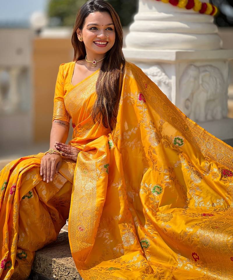 | Product Name | Soft Litchi Art Silk Banarasi Art Silk Jacquard Saree (Banarasi 1 Yellow) | |