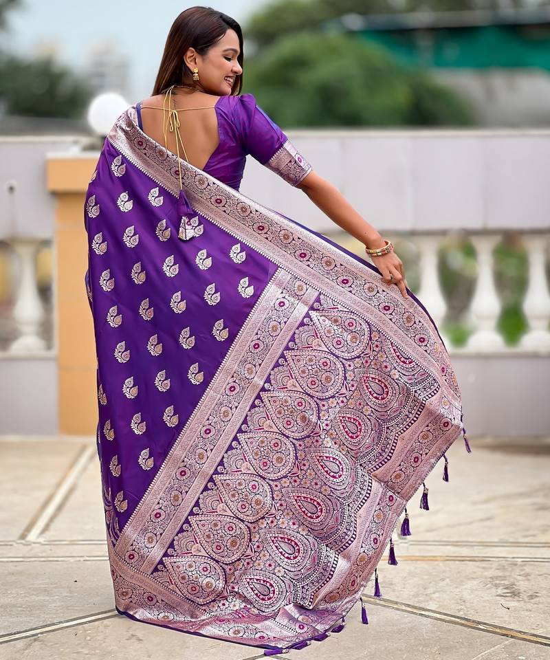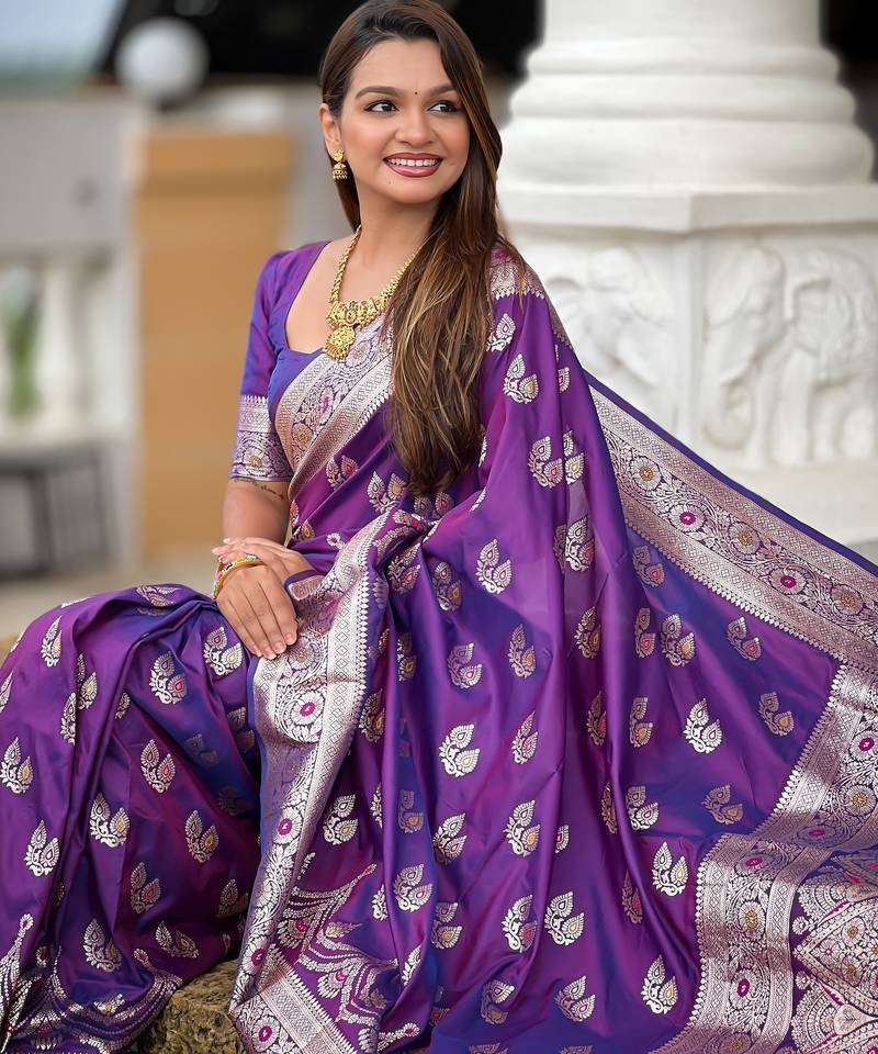 Soft litchi art silk banarasi art silk jacquard saree (banarasi-15-purple)