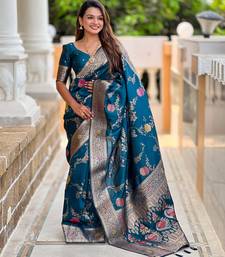 | • | Saree | : | Color- Blue / Fabric- Art Silk |