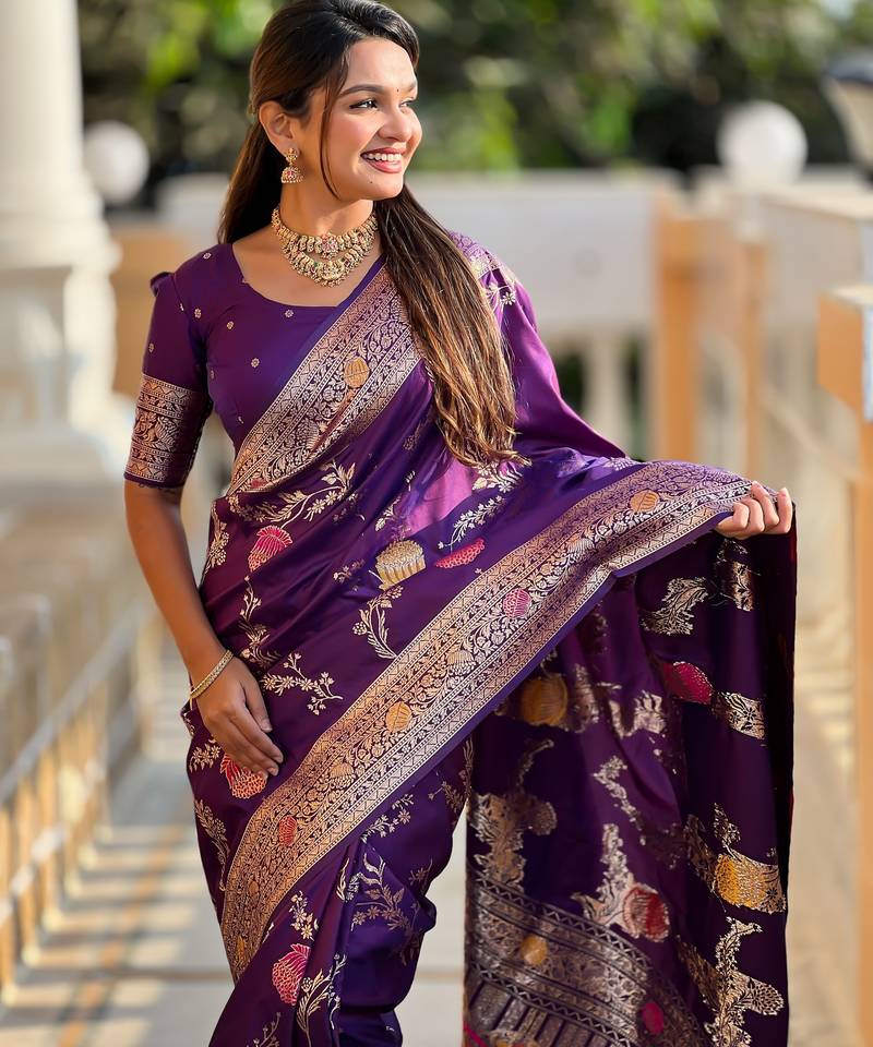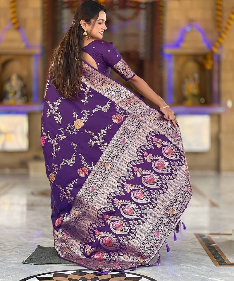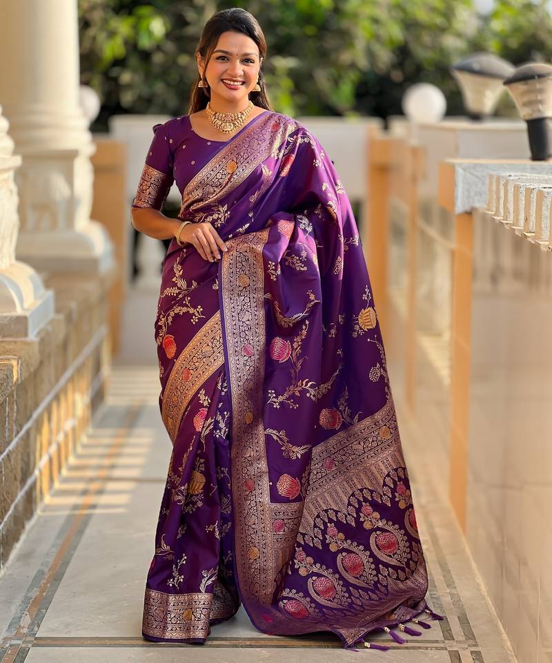 Soft litchi art silk banarasi art silk jacquard saree (banarasi-2-wine)