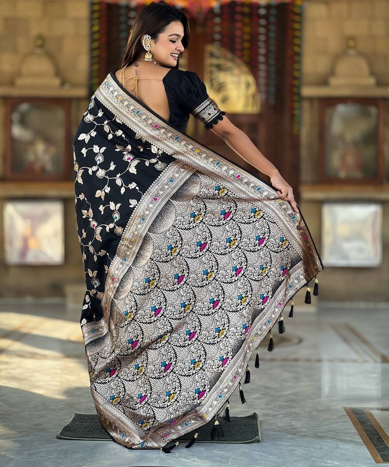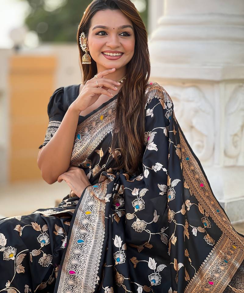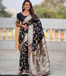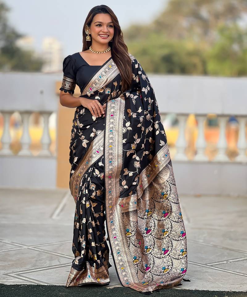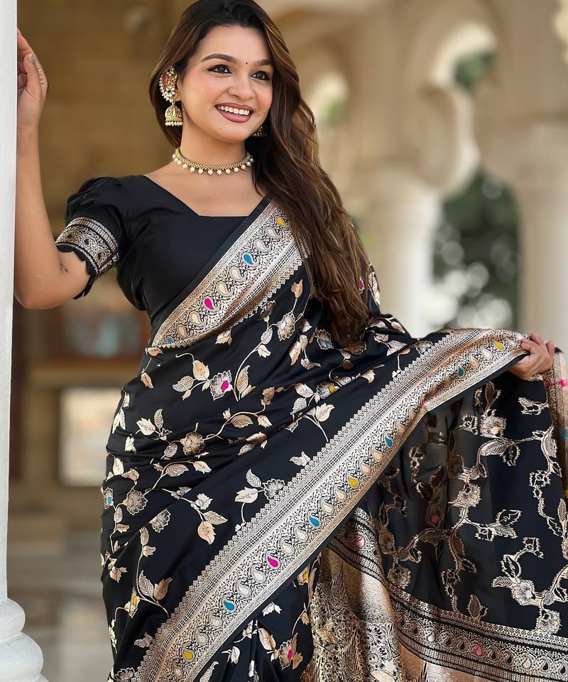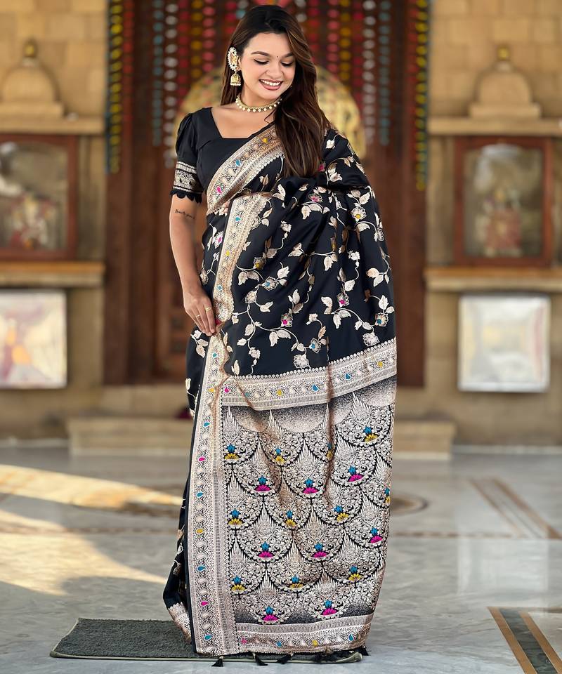 Soft litchi art silk banarasi art silk jacquard saree (banarasi-4-black)