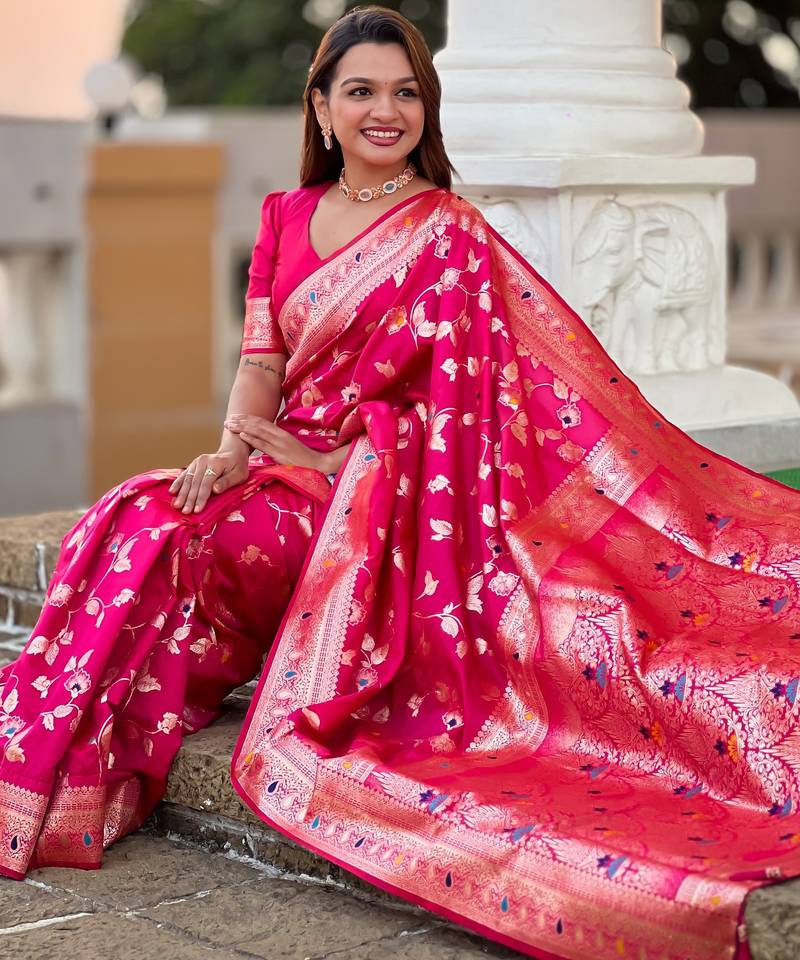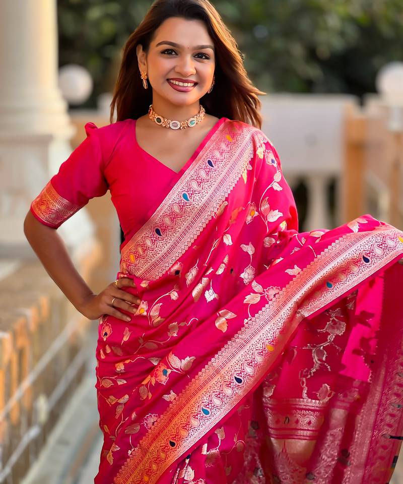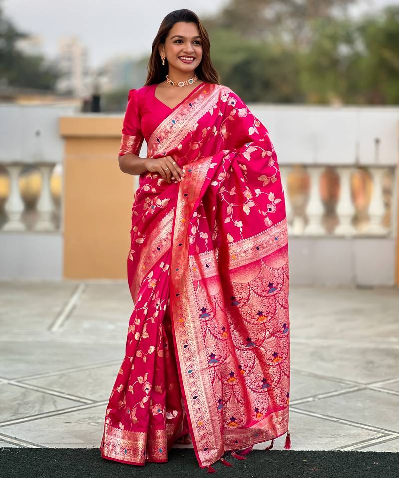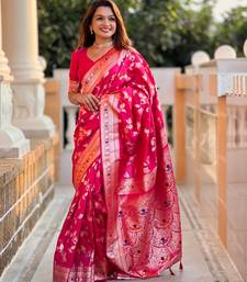 | • | Saree | : | Color- Rani Pink / Fabric- Art Silk |