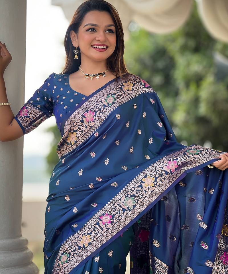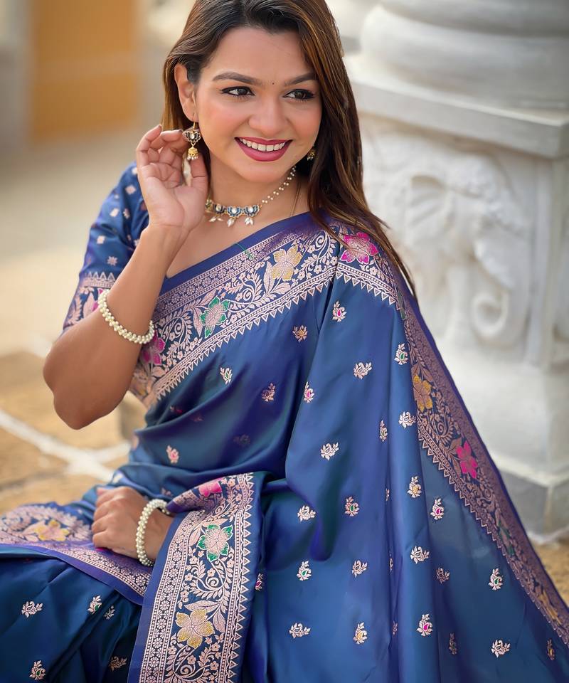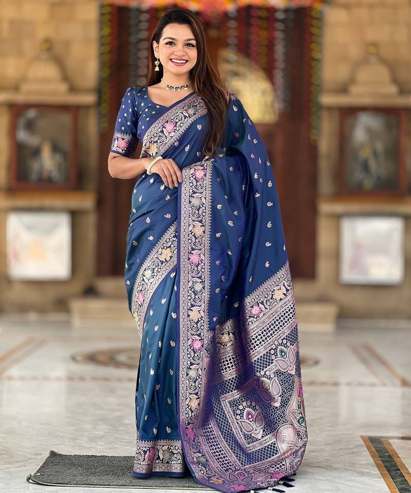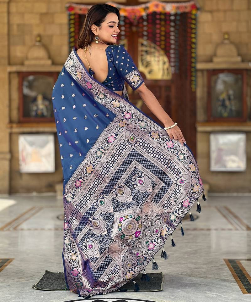 | • | Saree | : | Color- Blue / Fabric- Art Silk |