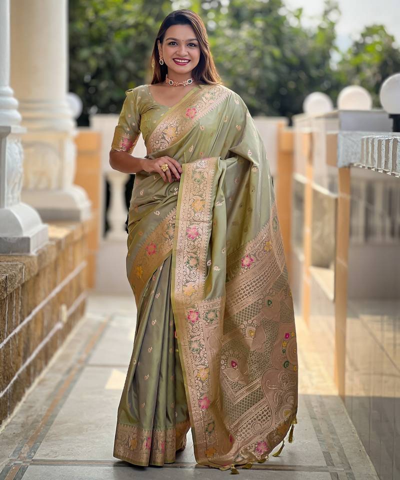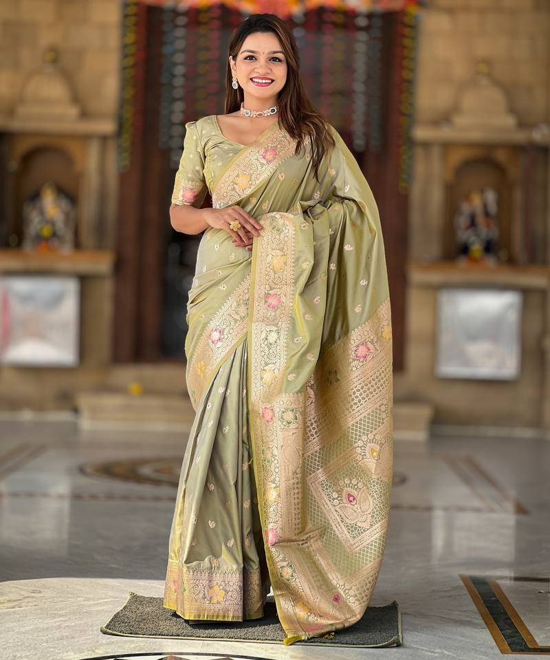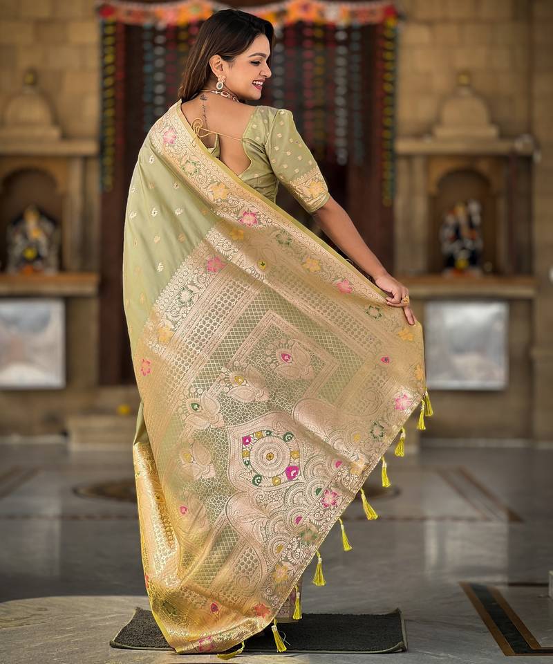 Soft litchi art silk banarasi art silk jacquard saree (banarasi-5-pista)