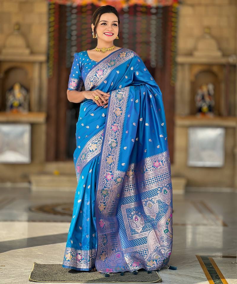 Soft litchi art silk banarasi art silk jacquard saree (banarasi-5-sky-blue)