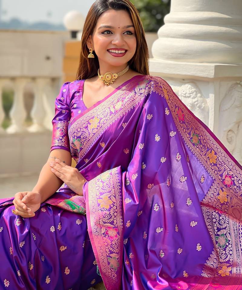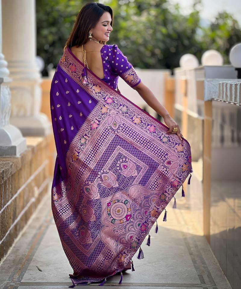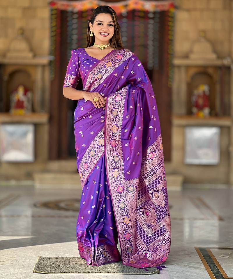 Soft litchi art silk banarasi art silk jacquard saree (banarasi-5-violet)