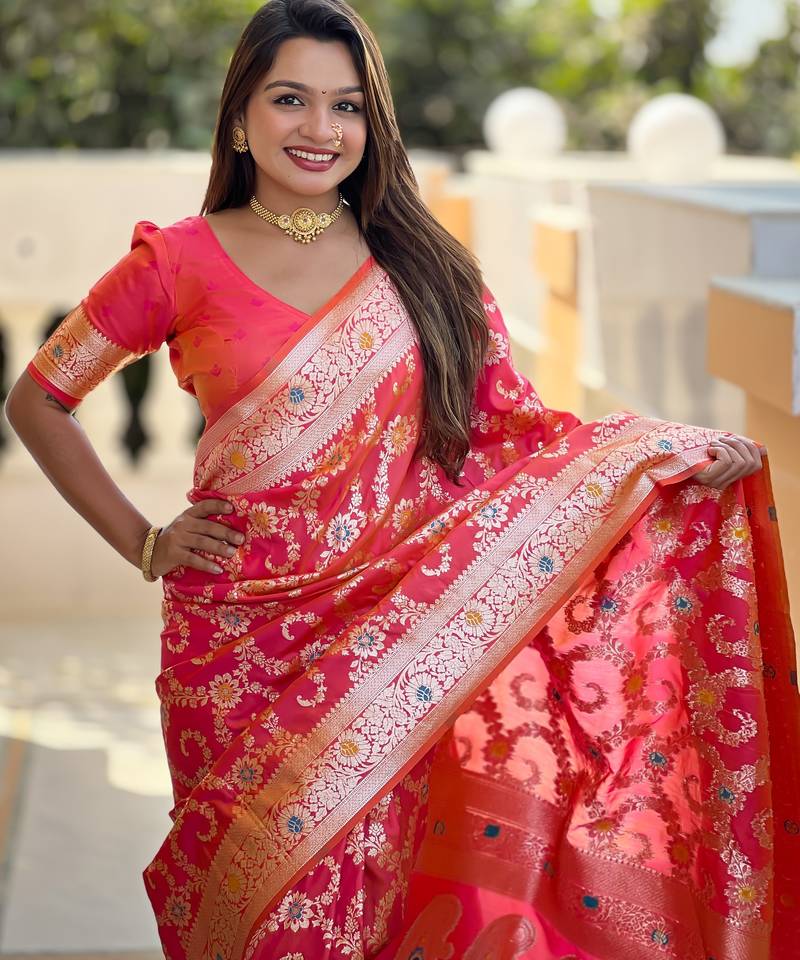 Soft litchi art silk banarasi art silk jacquard saree (banarasi-6-gajri-pink)
