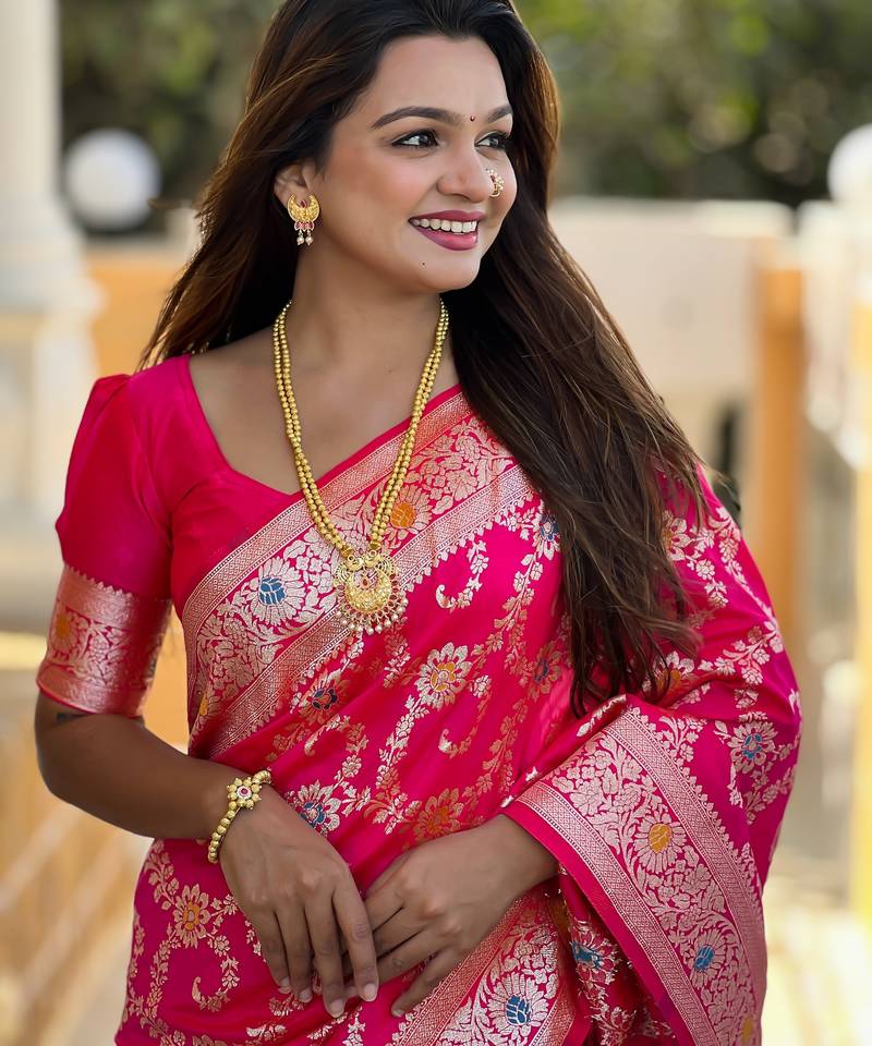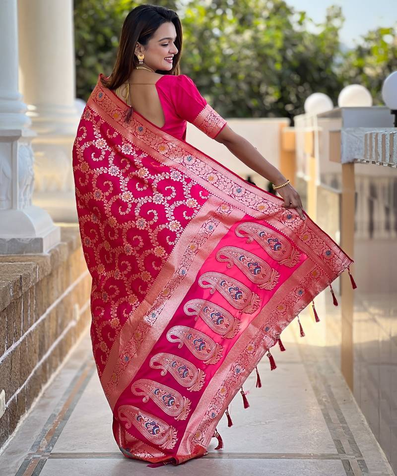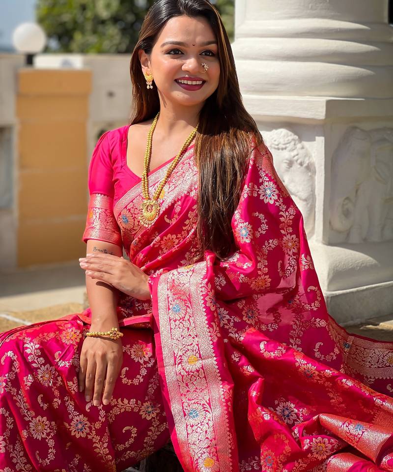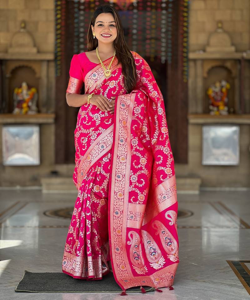 Soft litchi art silk banarasi art silk jacquard saree (banarasi-6-rani-pink)