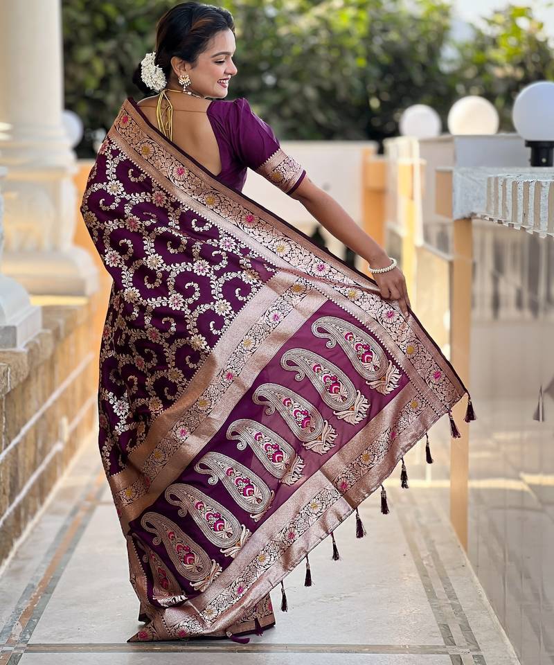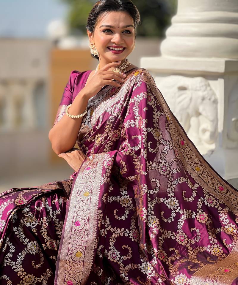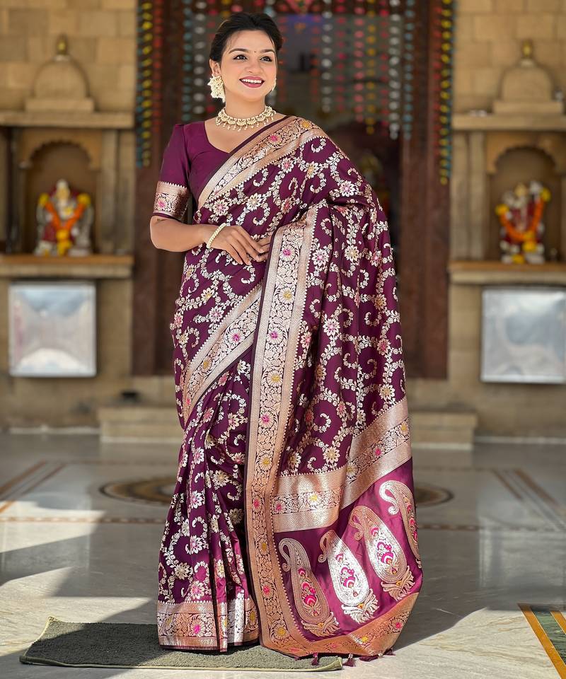 Soft litchi art silk banarasi art silk jacquard saree (banarasi-6-wine)