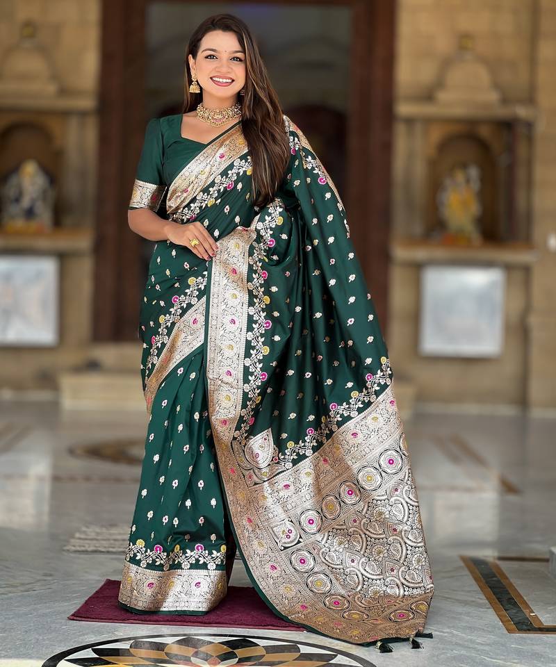 Soft litchi art silk banarasi art silk jacquard saree (banarasi-7-b-green)
