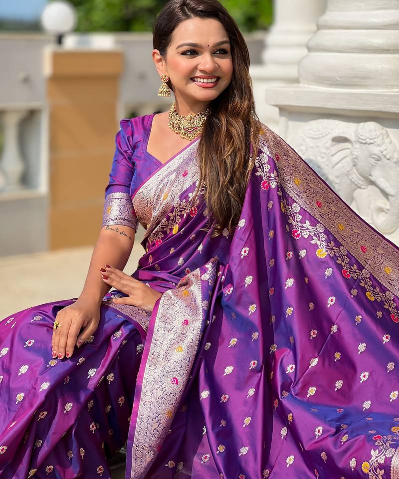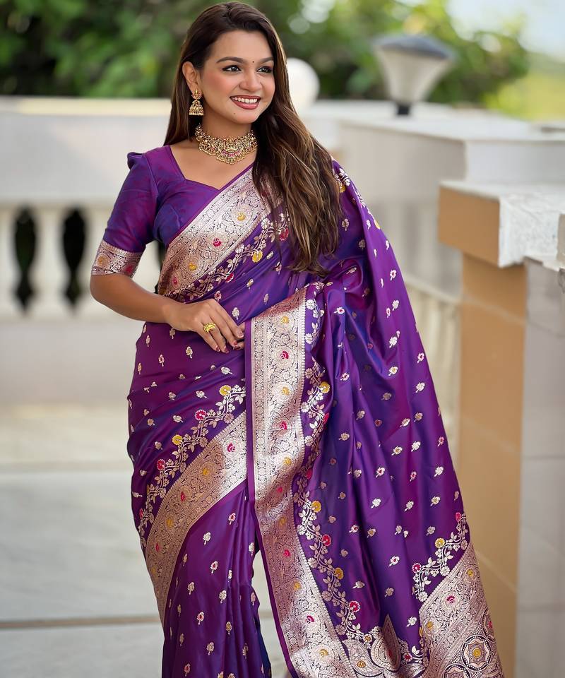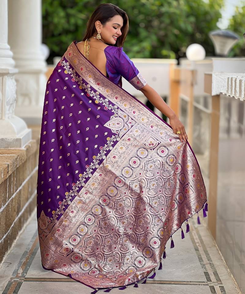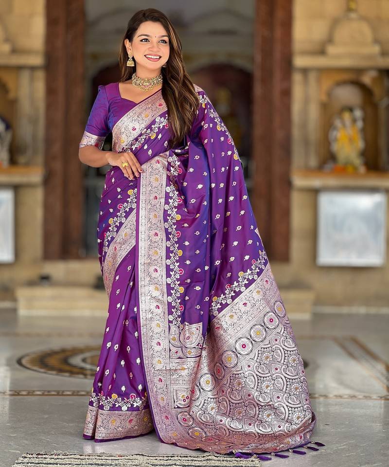 Soft litchi art silk banarasi art silk jacquard saree (banarasi-7-purple)