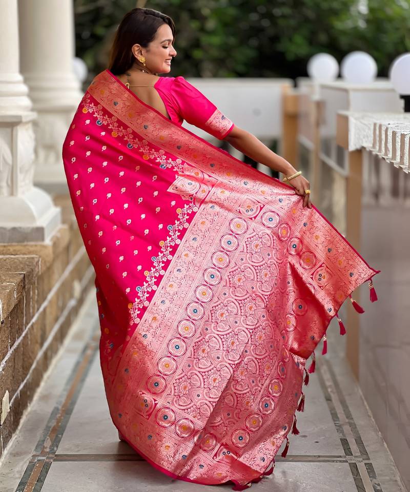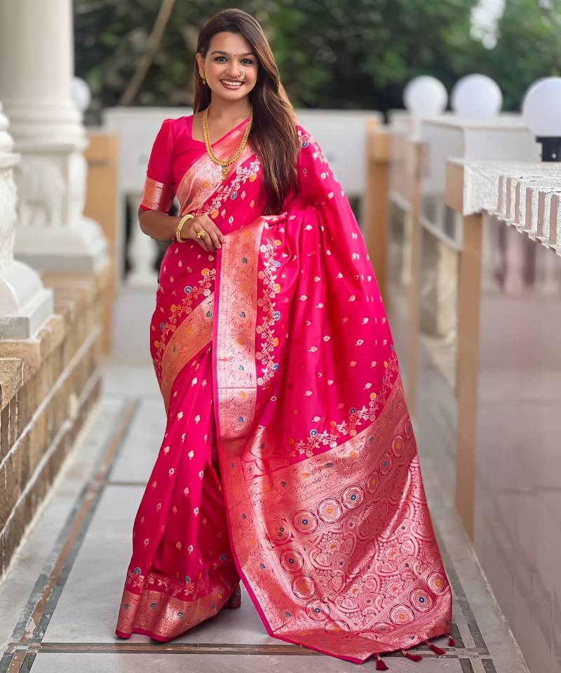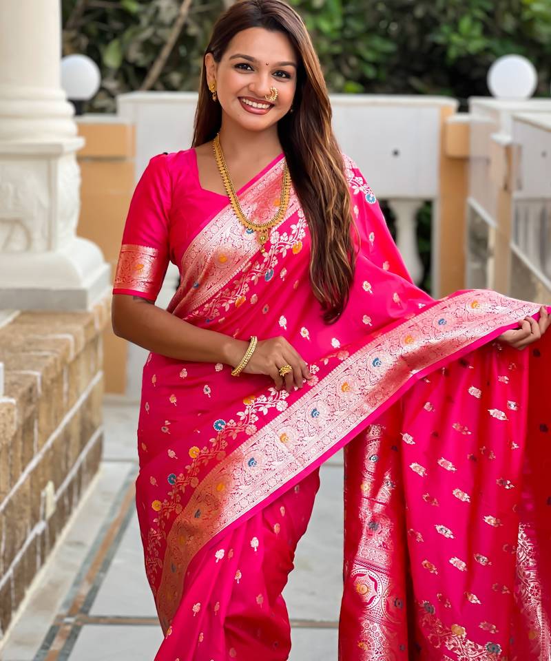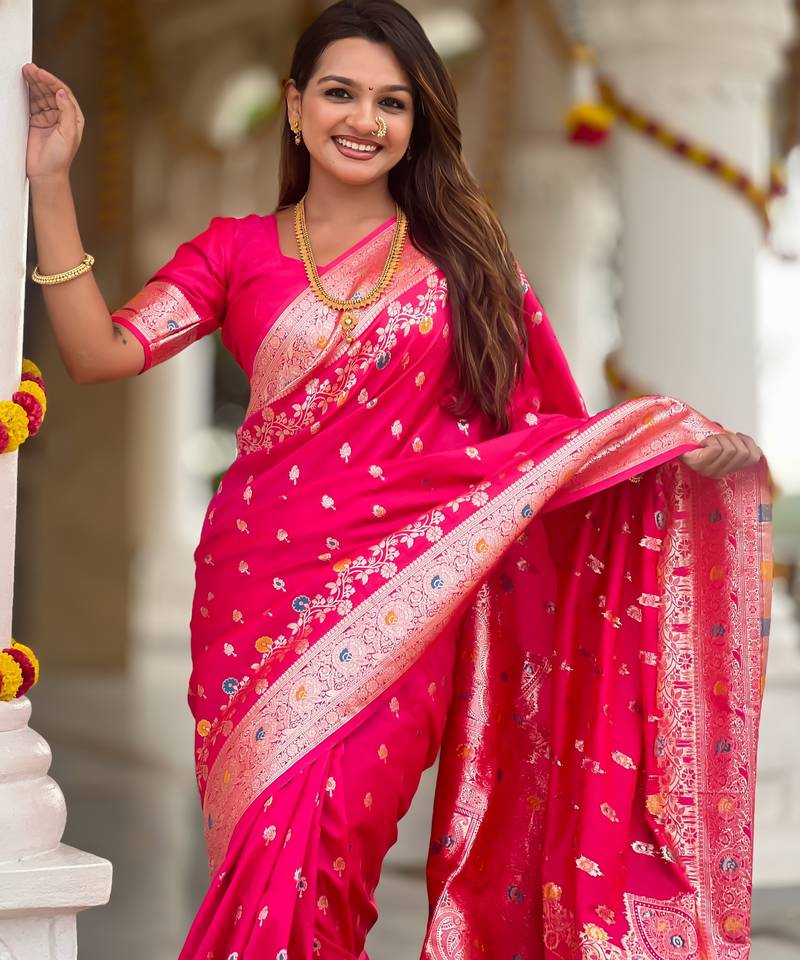 Soft litchi art silk banarasi art silk jacquard saree (banarasi-7-rani-pink)